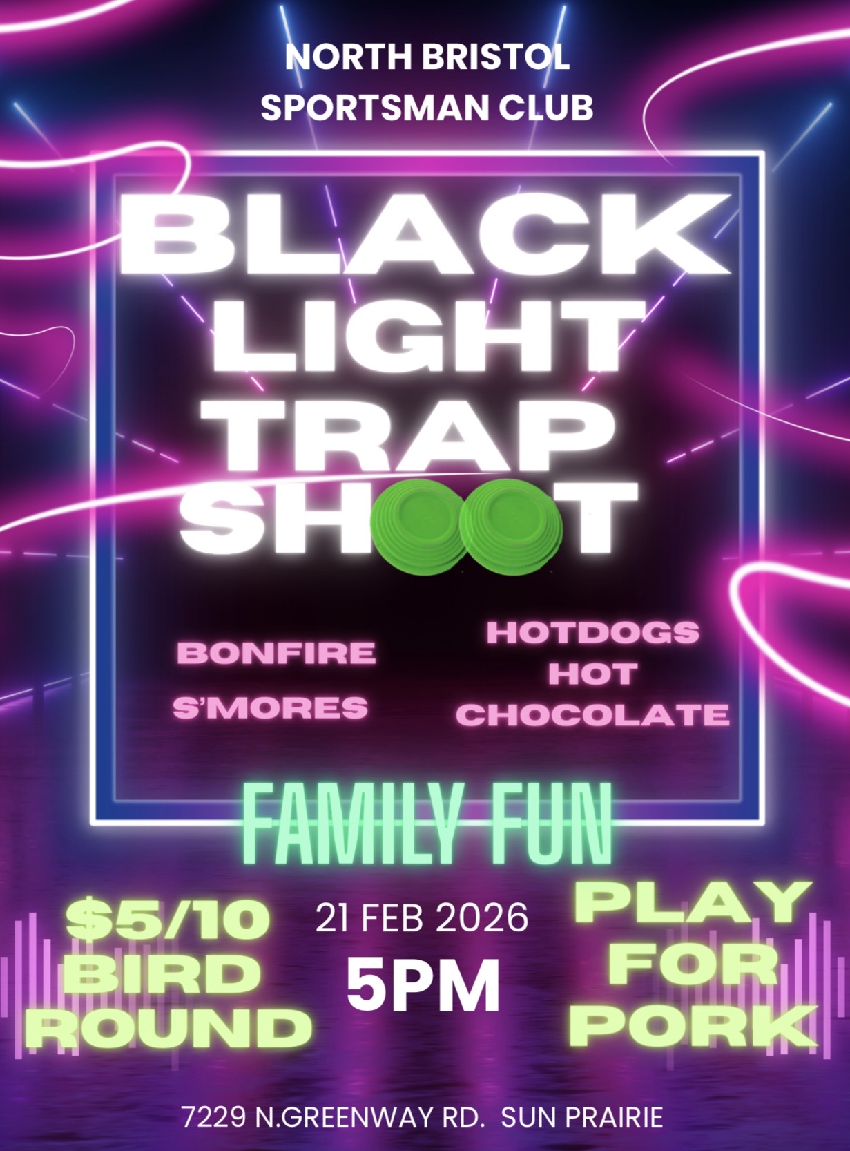 Deerfield Rod & Gun Club Black Light Merchandise Shoot; $5 /